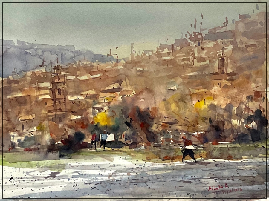 In še več: tisto, česar ni, je še naprej potencial; za koga drugega, za nekoga mogoče je. (Če bi bil po poklicanosti dimnikar, bi verjetno v tem akvarelu poiskal dimnike, razmišljal, ali so iz opeke, ali kurijo na plin itd. Če urbanist, bi razmišljal, kako so hiše skupaj zložene. Če arborist, kakšna drevesa so le to ob plaži, pesku, vodi?)