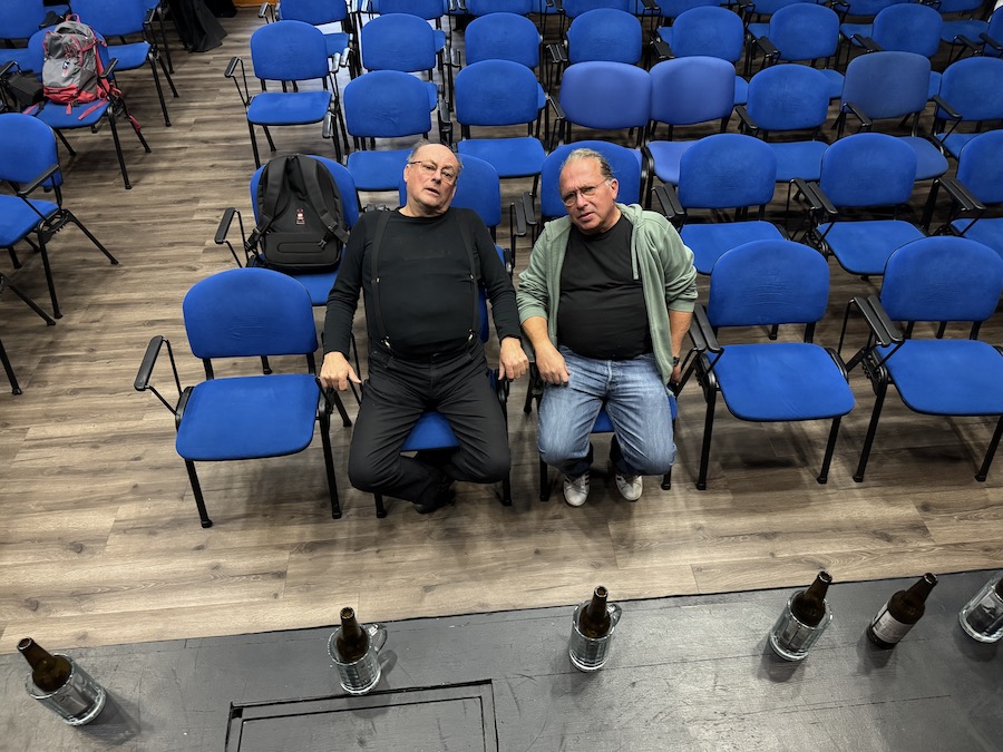 Žalostno sta fanta na delovnem mestu gledala objekte na sceni,