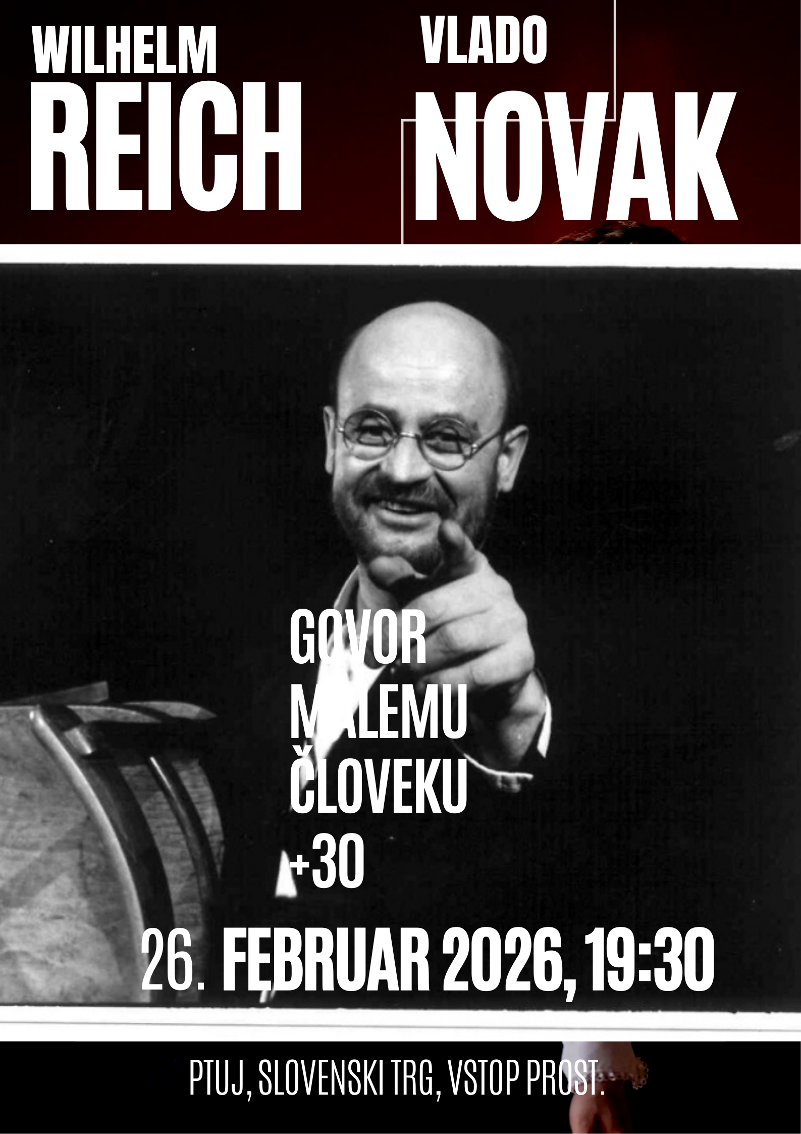 Jutri zvečer (26. 2. 2026) pa vabljeni zaposloskat Vladu Novaku, ki bo po 30-ih letih znova odigral Govor malemu človeku.