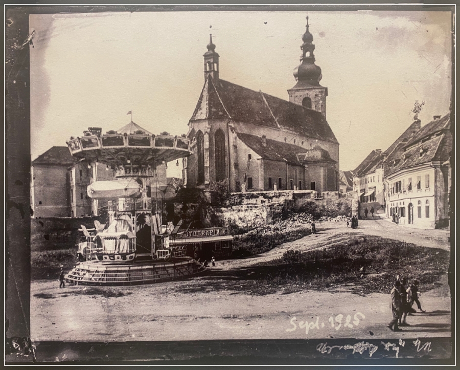 In nedavno ga spijeva. Sredi Bad Radkersburga, na osrednjem trgu. Hauptplatz.